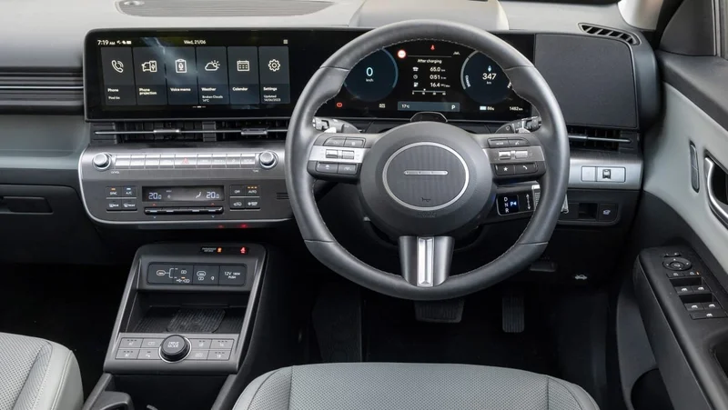 Внутри пара 12,3-дюймовых дисплеев, которые доминируют на передней панели, в значительной степени взяты прямо из других Hyundai, но здесь они работают с новым программным обеспечением с более чистым интерфейсом, который включает в себя более крупные и простые в использовании «виджеты».