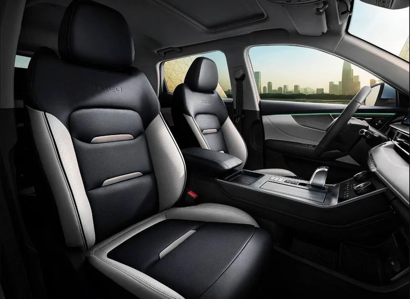 Tiggo 5x Plus отличается от текущего российского Tiggo 4 Pro новой решеткой радиатора и бампером. Интерьер Tiggo 5x Plus был вдохновлен старшим Tiggo 7 Pro Max, а дизайн панели климатической системы взят у Tiggo 8.