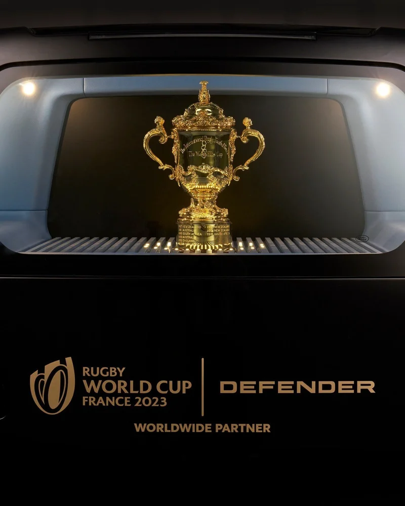 Суббренд Defender является всемирным партнером чемпионата мира по регби во Франции 2023 года, а также официальным автомобильным партнером турнира. Таким образом, разработка уникального автомобиля — это важная часть расписания предсоревновательных мероприятий, поэтому с 9 июня во время Кубка мира по регби во Франции как автомобиль, так и сам кубок будут выставлены в многочисленных частных или общественных местах, таких как Биарриц, Париж, Монпелье, Сен-Тропе или Кап-Ферре — заключительные места тура 13 и 14 августа.