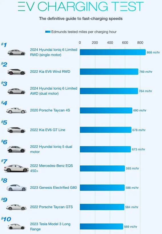 - Tesla Model 3 Long Range — замыкает топ-10 с 916 км на часовую зарядку, подтверждая, что Tesla продолжает быть одним из ключевых игроков на рынке электромобилей.